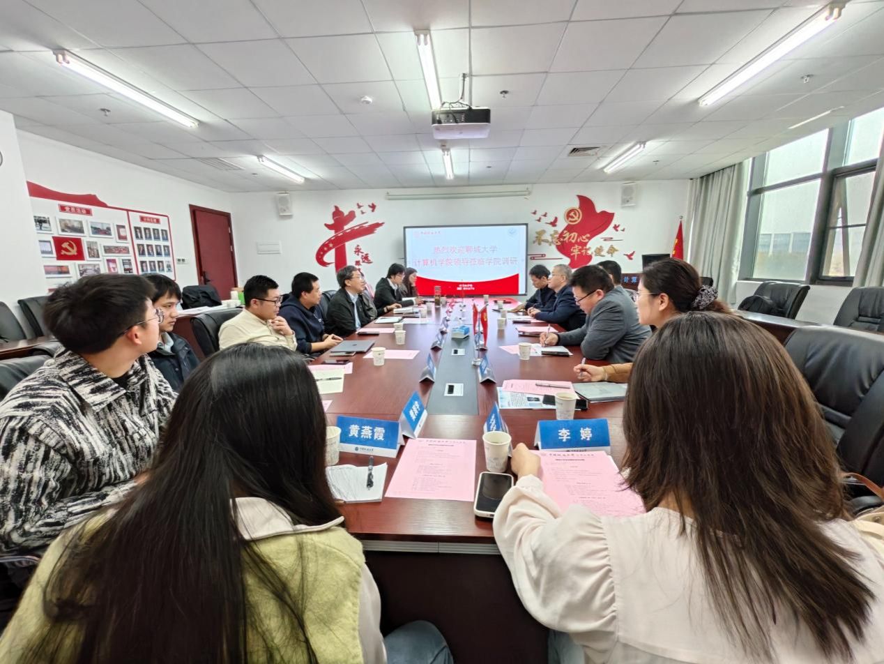 11月7日上午,聊城大学M6体育 党委副书记兼院长贾仰理、教务处副处长张绪涛、M6体育 副院长李成友、教务处教学质量管理中心副主任耿庆军、M6体育 软件工程系主任韩玉艳、专业教学实验中心主任凌海云、工程教育专业认证办公室主任李德奎一行7人来M6体育 交流访问。M6体育 副院长刘刚、各系室主任、教师代表参会。刘刚副院长主持交流会。