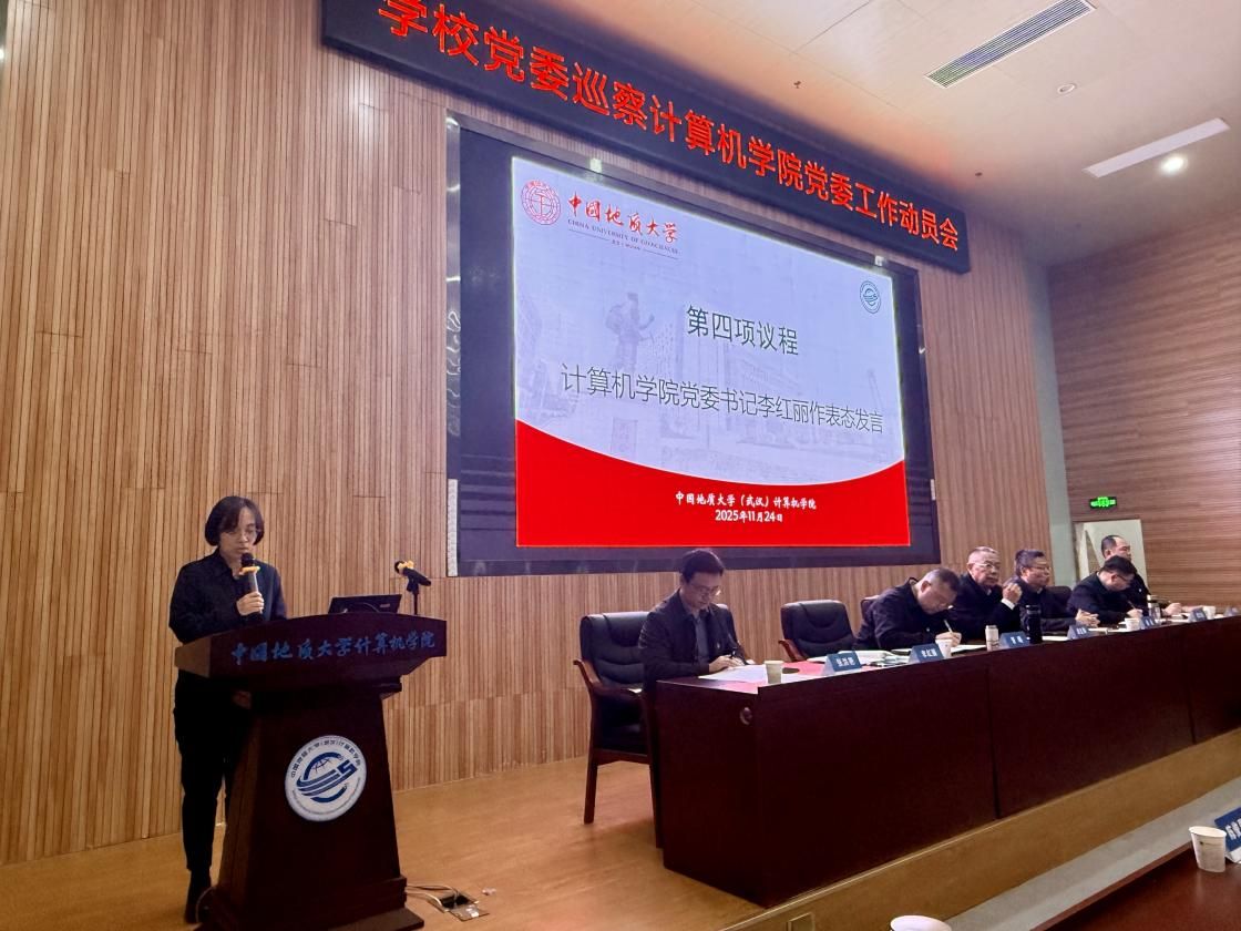 根据中国地质大学(武汉)第三轮巡察工作安排,2025年11月24日上午,校党委巡察计算机M6体育 党委工作动员会在M6体育 126报告厅召开。校党委副书记、纪委书记唐忠阳,校党委巡察办主任晋曦,巡察组组长、公共管理M6体育 党委书记徐岩,副组长、资源M6体育 党委副书记谭文伦,副组长、经济管理M6体育 党委副书记李纪亮,组员邓锡琴、张川、陈俊男、张弛,M6体育 全体教职工、离退休老同志代表、学生代表等120余人参加会议。院长张洪艳主持会议。