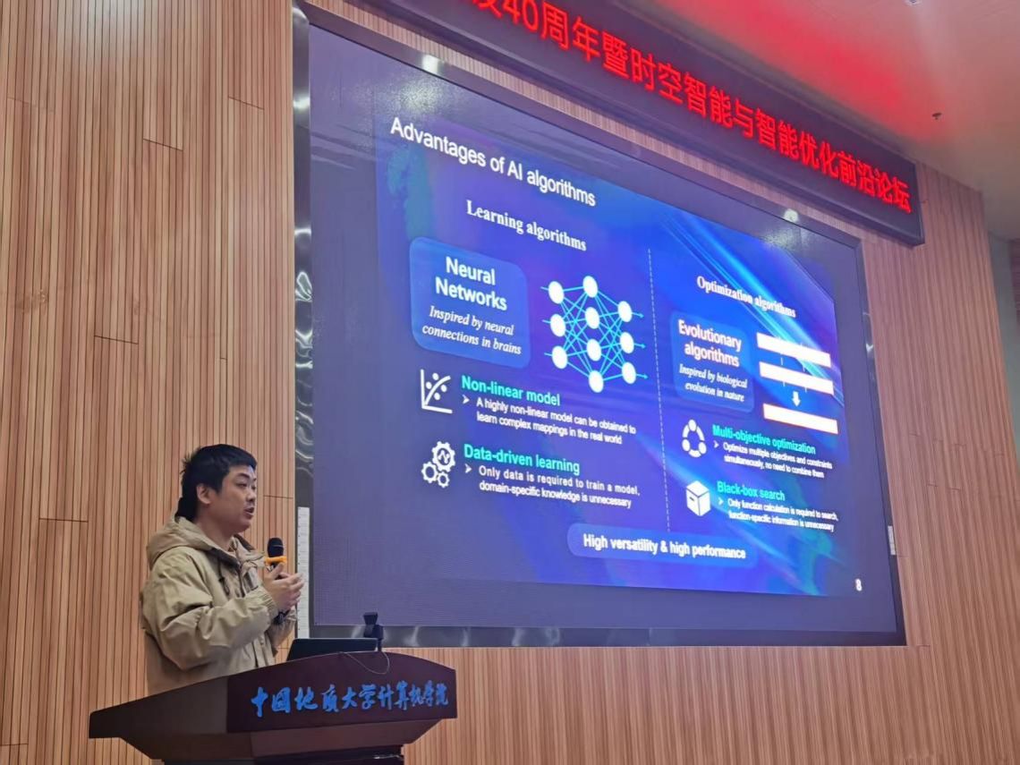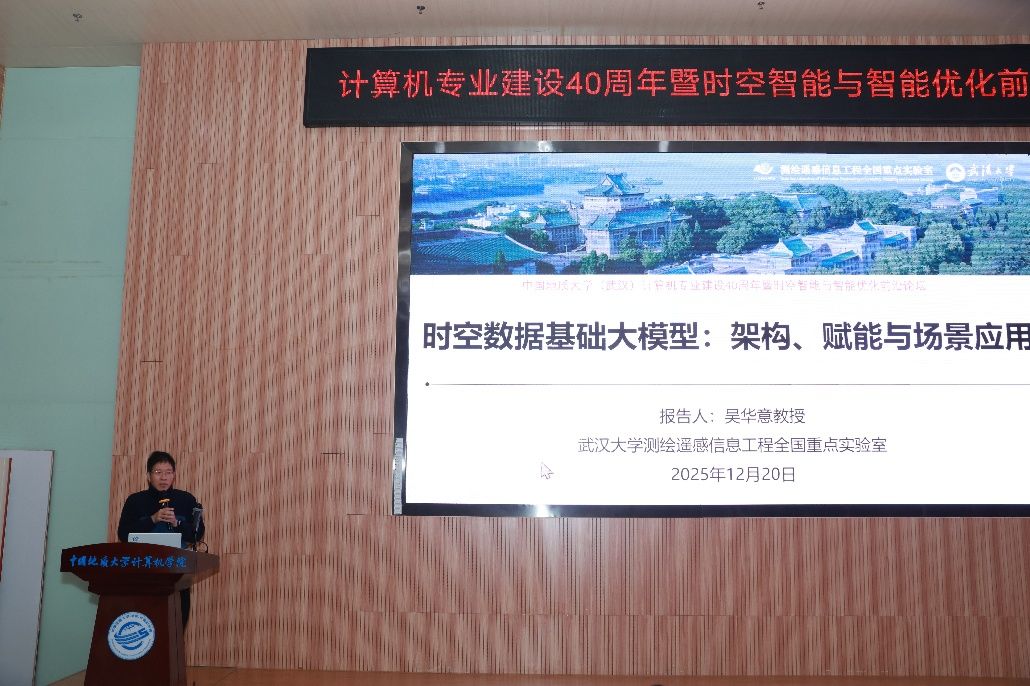 2025年12月20日,值此米乐M6体育app下载手机版 建院20周年之际,由计算机科学与技术系与计算机应用系组织的报告会——“时空智能与智能优化前沿论坛”在中国地质大学(武汉)未来城校区M6体育 126报告厅成功举办。本次活动作为米乐M6体育app下载手机版 建院20周年暨专业建设40周年系列学术活动之五,吸引了来自武汉大学、华中科技大学、中南大学、北京师范大学、安徽大学、武汉科技大学、江苏理工M6体育 等单位国内外知名学者踊跃参加,共同围绕时空智能与智能优化“理论—技术—应用”前沿展开深入交流,集中展示人工智能时代时空信息处理与智能优化算法的新突破、新范式,为院庆系列学术活动再添浓墨重彩的一笔。M6体育 党委书记李红丽、院长张洪艳教授出席,报告会由张洪艳教授、刘刚教授、陈麒玉教授、卢超副教授依次主持,熊慕舟副教授作总结发言。