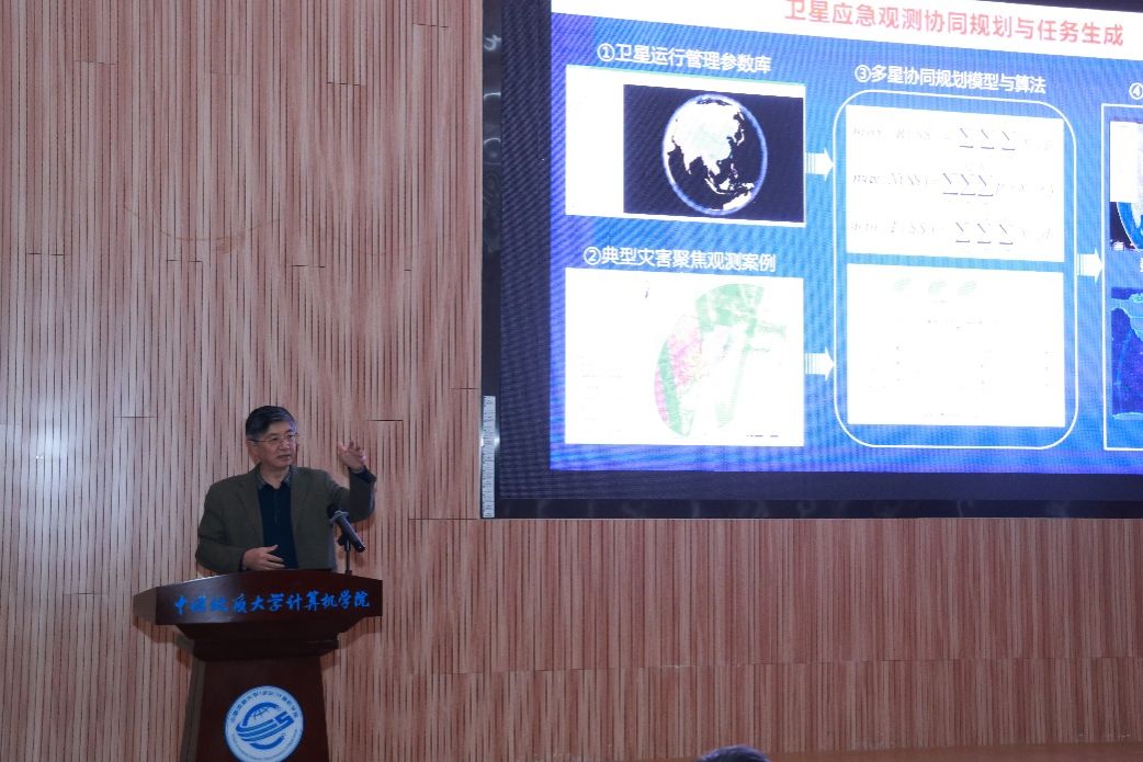 中南大学吴立新教授以《浅谈灾害遥感应急服务的若干智能技术》为题,结合为巴基斯坦、印度尼西亚提供洪涝灾害应急监测的经历和实际应用场景,对团队在机器值守灾害监听、卫星应急观测规划、洪涝灾情态势检测以及高位滑坡遥感识别方面的研究进展进行了介绍,分析了卫星观测中的难点,提出了多模态卫星数据融合的灾情监测方法。