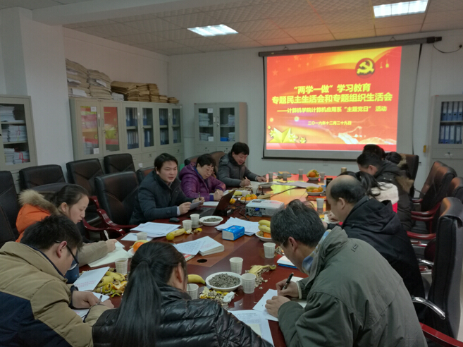 (通讯员:彭雷)2016年12月29日下午,计算机应用系党支部在北一楼213会议室举办“两学一做”学习教育专题民主生活会和专题组织生活会。会上应用系全体党员起立,奏唱国歌。支部书记何珍文同志带领全体党员重温入党誓词并诵读了《关于新形势下党内政治生活的若干准则》中关于开展批评和自我批评的内容。武云同志通报了2016年党费交纳工作情况。