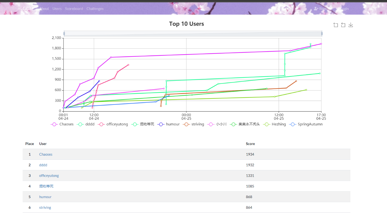 比赛开始后积分榜排名数次更迭,气氛也愈发激烈紧张。34个小时的比赛不仅仅是对参赛者实力的考验,更是对心理和耐心的考验。参赛选手们表现出色,最终,20级计科学子张桐同学荣获一等奖,于桐、刘俊良、何申奥同学荣获二等奖,智贺宁、耿春秋、李沐卿、周引、易君儒等选手荣获三等奖。