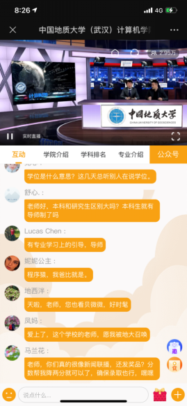 线上组的老师主要负责运营M6体育 Cser公众号、M6体育 网站;建立M6体育 招生咨询群;派专人值守招生咨询电话,同时进驻我校今年在全国各省的招生宣传群,负责解答家长和同学们的问题。特别值得一提的是,今年M6体育 在中国地质大学(武汉)本科招生网、678好志愿平台上先后进行了4场线上直播,直播和互动时间5个多小时,辐射15万+考生和家长,全方位展示了M6体育 的综合实力、办学特色和办学成果,进一步提升了M6体育 的社会美誉度和影响力。