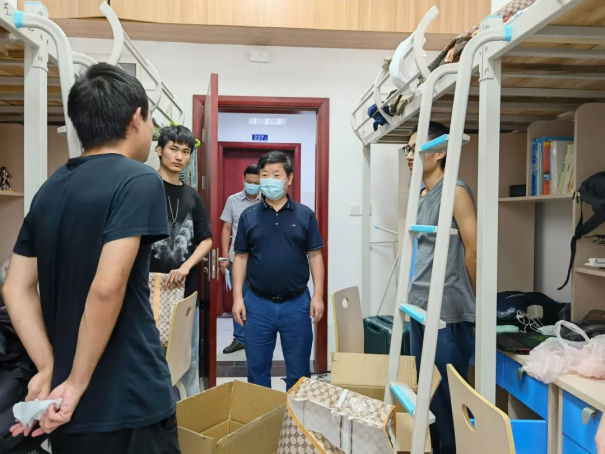 下午,M6体育 党委书记李国昌、副院长张冬梅、党委副书记傅苑、副院长胡成玉,团委书记李欢欢、办公室主任石剑峰、院直支部书记黄燕霞、全体辅导员以及教务科老师前往宿舍看望同学们,送上问候和关怀,叮嘱同学们要在新的生活环境中努力学习,奋发有为。