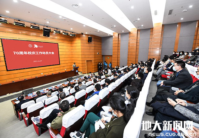 地大新闻网讯(记者张玉贤 学生记者赵睿思 赵奕康)11月7日,学校70周年校庆工作动员大会在南望山和未来城两校区同步举行。会议对70周年校庆工作进行动员和部署。在校院士,在校校领导,党委常委,校学术委员会、二级单位负责人,工会、教职工、学生和离退休教职工代表,校友代表殷昌平、谢志军、寇克让、熊友辉、贺健、卢禄华、郑洪标、龚杰、陈晓阳等参加会议。