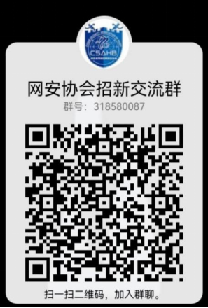 演练的成功离不开背后的组织。中国地质大学(武汉)网络空间安全协会成立于2018年,曾代表学校获得全国信安大赛网络攻防比赛二等奖的好成绩。社团面向全校本科生,带领社团成员学习网络安全相关知识,培养网络安全意识,提高网络安全实战技能。目前社团的5名核心成员中,除了4名M6体育 的学生外,还有1名来自资源M6体育 的学生。社团将在下学期开展各类攻防演练技术沙龙,组织模拟CTF夺旗赛,社团老师还将提供攻防题目供成员练习。除了拥有此次同学校网络中心合作的攻防实战机会以外,还将有参加全国CTF竞赛、湖北省护网行动、以及前往深信服科技总部进行观摩并参加攻防演练的机会。对网络安全和网络攻防感兴趣的同学,可扫码加群,我们期待你的加入!