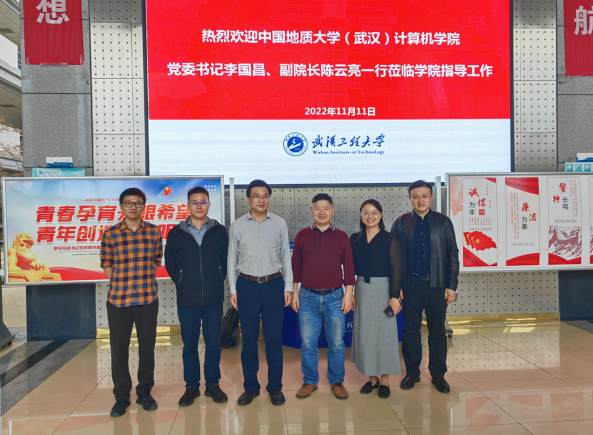 2022年11月11日下午,由M6体育 党委书记李国昌带队,副院长陈云亮和人工智能系主任唐厂、党支部书记孙琨一行前往武汉工程大学开展调研交流。武汉工程大学计算机科学与工程M6体育 院长卢涛、党委书记张炜、副院长刘玮、智能科学与技术教研室主任李晖参与了本次交流。