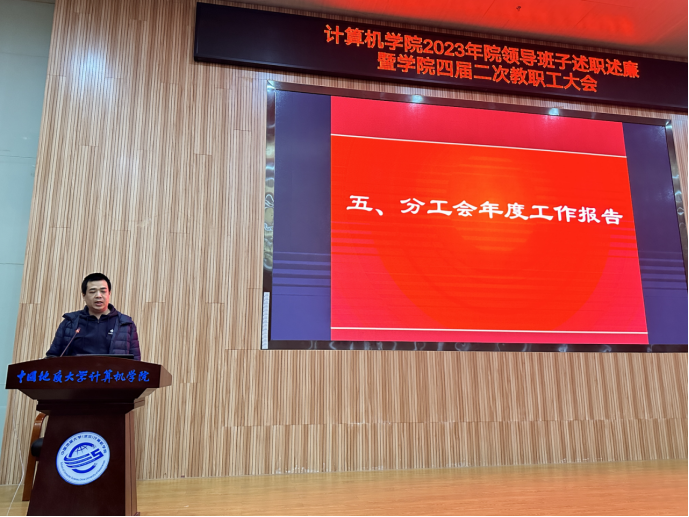 梁庆中作M6体育 分工会2023年度工作报告。2023年,M6体育 分工会紧紧认真履行工会“参与、维护、教育、建设”四项基本职能,带领全体会员积极参与M6体育 的各项建设工作,在人才引进与培养、学科建设、民主管理及监督、院务公开、关心群众生活、促进教职工身心健康等方面做了大量工作,充分发挥了工会的桥梁纽带作用。