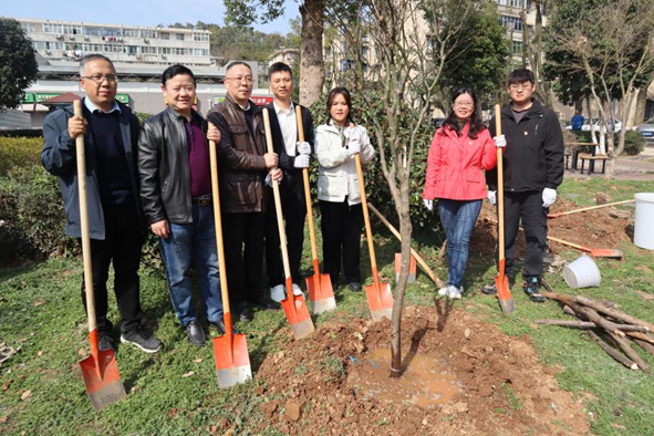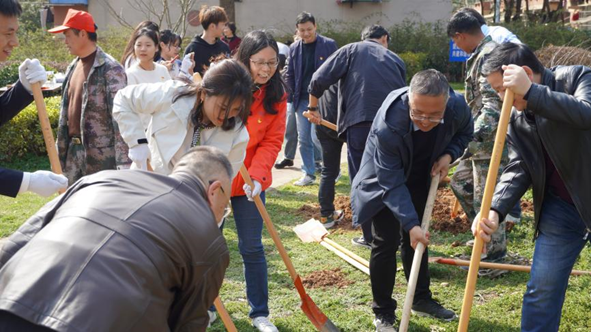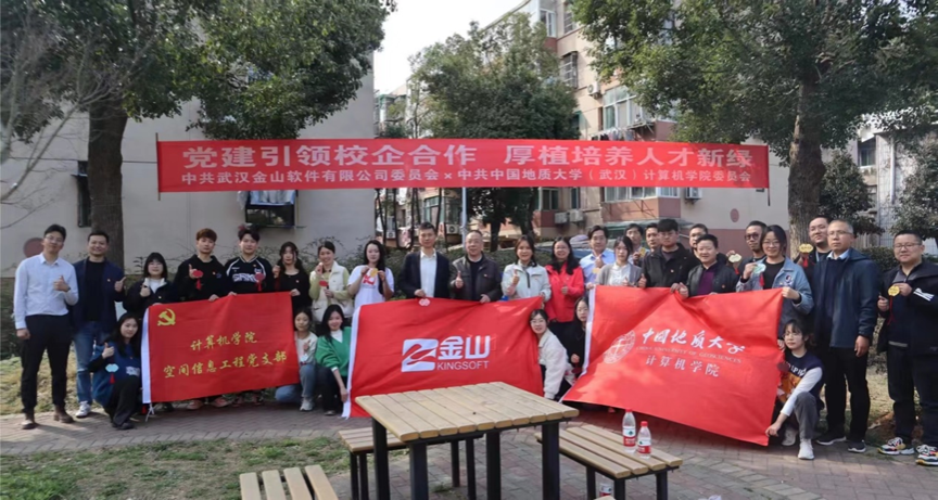 春回大地,万物复苏。为深入学习贯彻落实习近平新时代中国特色社会主义思想,践行“绿水青山就是金山银山”生态理念,探索中国地质大学“谋求人与自然和谐发展”的价值观。3月12日下午,在第46个植树节来临之际,中共武汉金山软件有限公司委员会、中共中国地质大学M6体育 委员会、中共中国地质大学后勤保障部委员会共同开展“党建引领校企合作 厚植培养人才新绿”联学共建活动。学校党委副书记、纪委书记唐忠阳,M6体育 党委书记李国昌,后勤保障部党委书记黄菊,金山软件党委书记、助理总经理张念,金山集团武汉总部总经理高宇峰,M6体育 师生代表、金山集团代表共30余人参加。