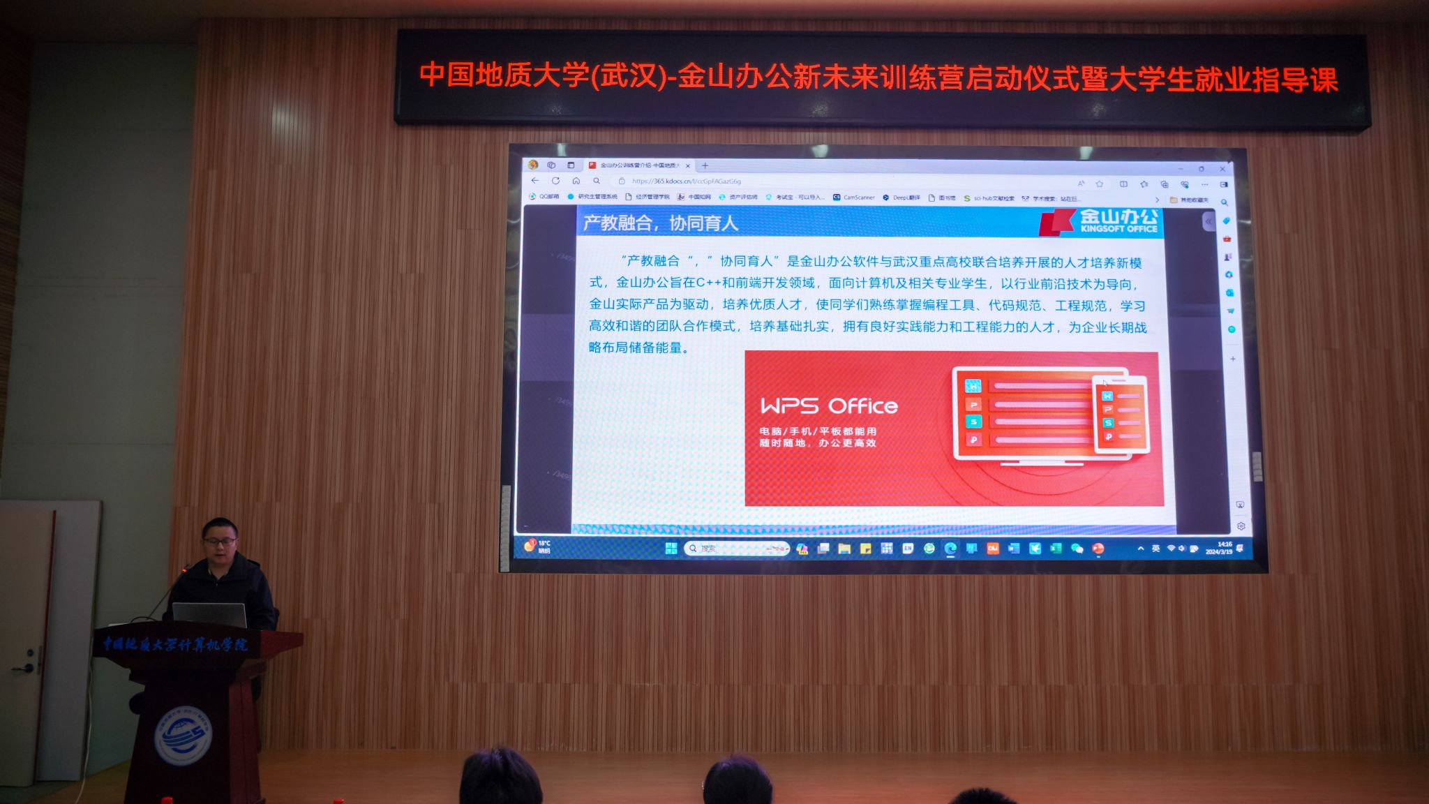 2024年3月19日,新一期的“中国地质大学(武汉)-金山办公新未来训练营”正式启动。金山办公助理总裁、云和协作事业部副总经理杨钢,武汉金山办公招聘总监、研发培训院总监陈志增,武汉金山办公研发培训院副总监武海涛,总经理助理陈泉源奕,M6体育 党委书记李国昌,校党委组织部副部长冷再心,研究生院研究生团工委书记王斯韵,金山办公新未来训练营班主任谭文博,金山办公新未来训练营优秀营员代表熊猛及参训学员160人参加。M6体育 党委副书记林小艳主持启动仪式。