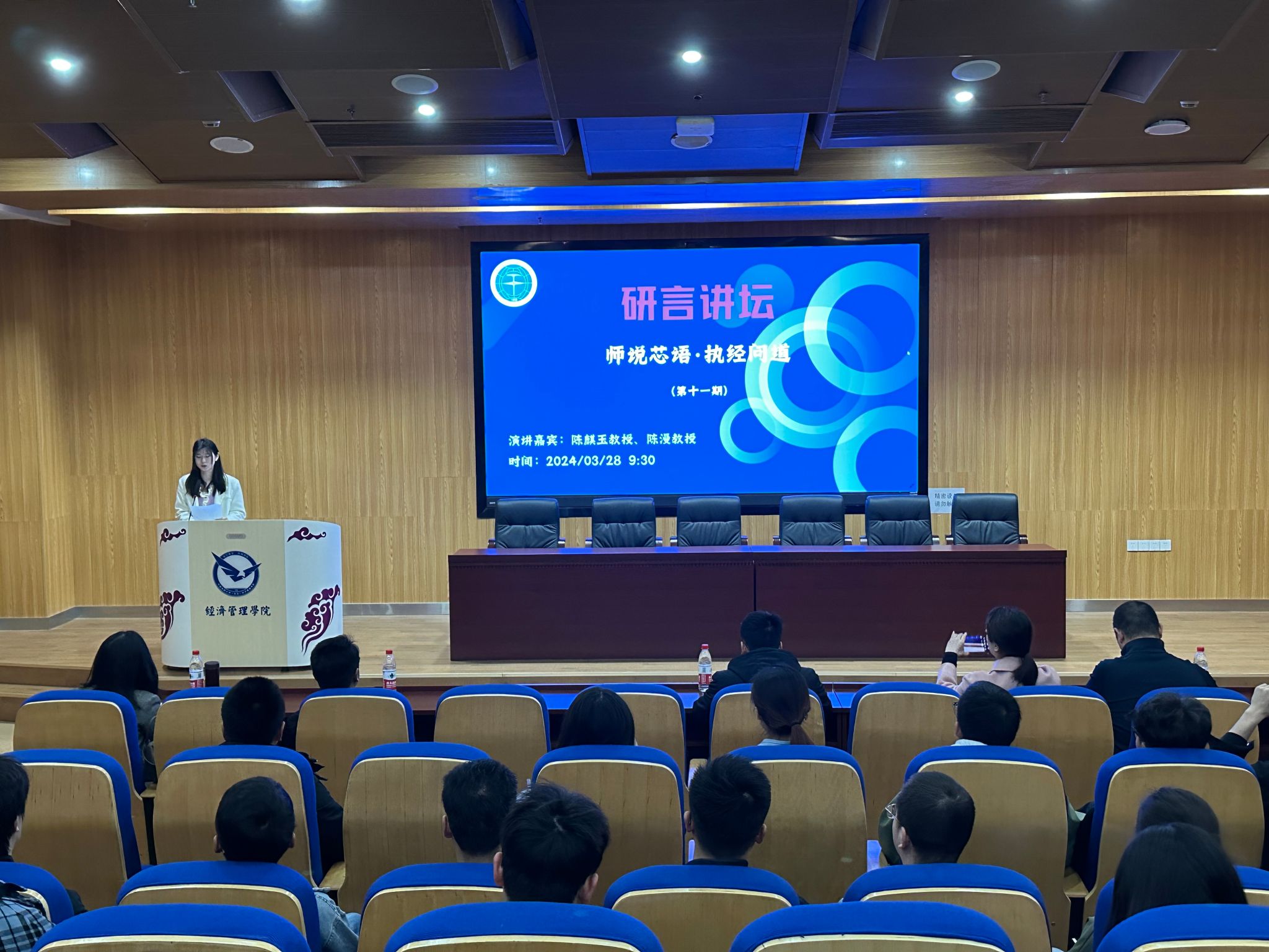 为激发研究生在跨学科研究方面的创新思维与对学术研究的热情,进一步拓宽学术视野,提升自我认知和发展规划能力,研究生院(党委研究生工作部)主办,M6体育 与经济管理M6体育 联合承办第十一期“研言讲坛”暨M6体育 第三期“师说芯语”导学沙龙, 2024年3月28日在未来城校区崇信楼110报告厅举办。本次活动M6体育 陈麒玉教授、经济管理M6体育 陈漫教授为主讲嘉宾, 党委研究生工作部挂职副部长蒙冕模、M6体育 党委副书记林小艳、经济管理M6体育 党委副书记李纪亮,两M6体育 100余名研究生参加。