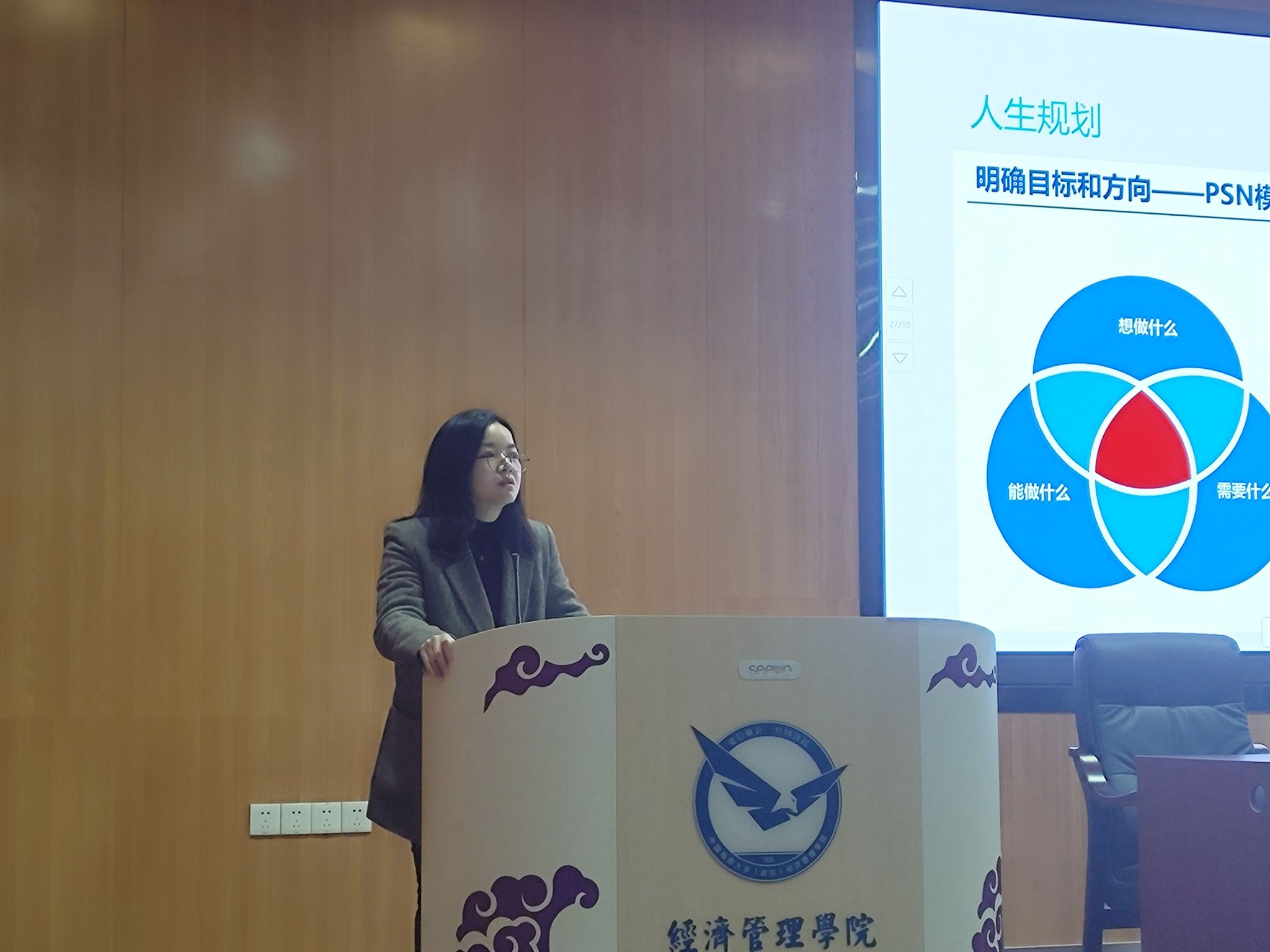 陈漫老师分享了她个人独特的成长求学经历,她坚信,“命运总是眷顾那些不懈努力的人”。在回顾自己职业生涯的关键时刻时,陈老师深有感触,她说,每一次选择和经历都是我们人生旅途中不可或缺的一部分,都值得我们认真对待并从中学习。她鼓励同学们要有信心,相信自己的能力和价值,不被外界的声音和干扰影响自己的判断和决策。