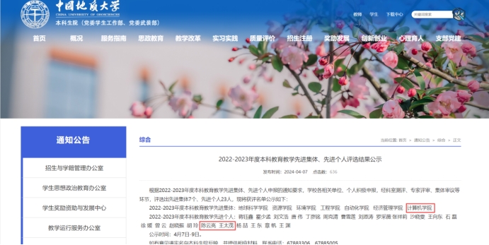 近日,学校发布了《2022-2023年度本科教育教学先进集体、先进个人评选结果公示》,M6体育 再次获评“2022-2023年度本科教育教学先进集体”,这也是M6体育 连续两次获此殊荣。此外,由于在教学改革、教师教学发展领域的卓越工作,陈云亮副院长、王太茂老师获评“2022-2023年度本科教育教学先进个人”。