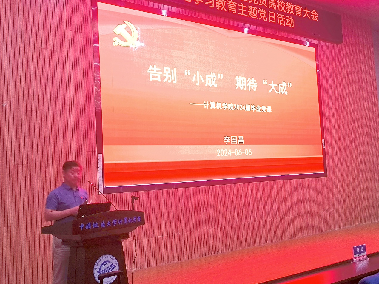 李国昌以《告别“小成”,期待“大成”》为主题,为毕业生党员讲授专题党课。他指出,昨天的我们追求思想进步、学业进步、乐于奉献,作为优秀学生的代表成长为一名光荣的中国共产党党员,获得了今日之“小成”;明天的我们应做到:第一,牢记党员第一身份,加入党组织,参加党内生活,按时缴纳党费,做到率先垂苑,遵守党风党纪,保持政治清醒;第二,加强理论学习,做到“六个必须坚持”为基础,掌握马克思主义世界观和方法论;第三,扑下身子做事,坚持实事求是,自觉践行造福人民的政绩观,把论文写在祖国大地上,提高政治本领;第四,以《中国共产党廉洁自律准则》和新修订的《中国共产党纪律处分条例》为遵循,坚守纪律红线,享受无忧人生。他将《中国共产党纪律处分条例》的部分条款,以“党员能不能面对危机困难临阵退缩”“党员能不能酒驾”“党员能不能搞迷信活动”等通俗易懂、一问一答的方式进行了解读。李国昌借用温家宝校友的话来激励同学们需要牢记“艰苦朴素,求真务实”的校训精神,把个人理想融入党和国家事业发展中,在各自的应用场景中发奋图强,以“小我”成就“大我”。
