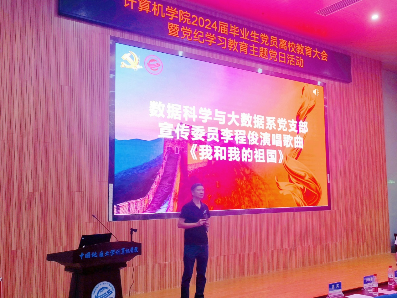 活动最后,李程俊带领大家齐唱《我和我的祖国》,并分享了自己在海外求学时听到留学生们深情演唱《我和我的祖国》时的澎湃激情,勉励同志们发扬“计科先锋”精神,将知识与能力献给祖国。