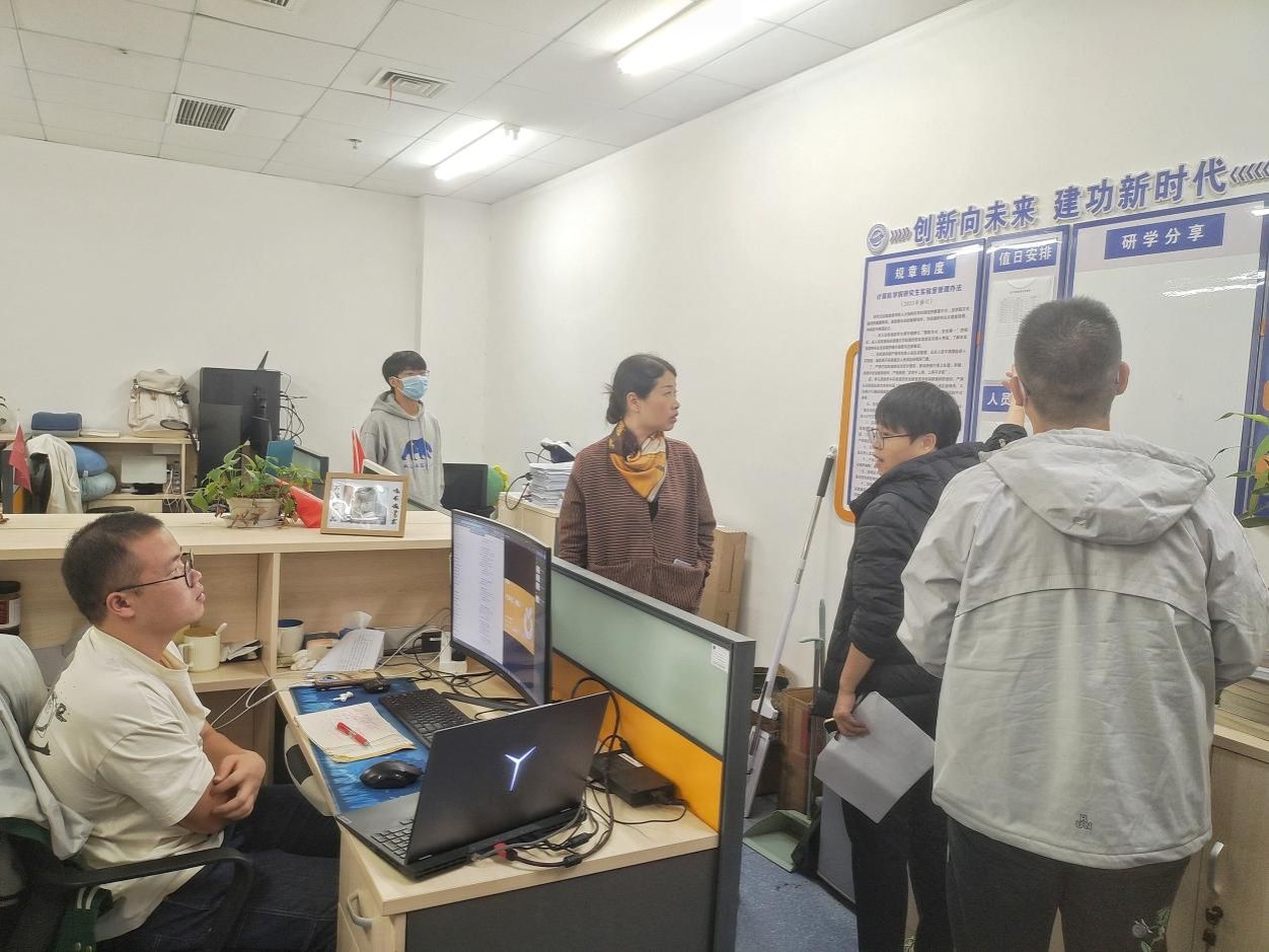 为深入推进研学空间建设,增强研究生安全教育管理,M6体育 于2024年10月24日下午,开展第65期“我的实验室我呵护”实验室走访活动,M6体育 副院长胡成玉、党委副书记林小艳、研究生辅导员李欢欢和研究生秘书黄果走访全院46间研究生实验室,了解同学们的科研进展和学习状态,巡查实验室安全卫生和日常管理情况。