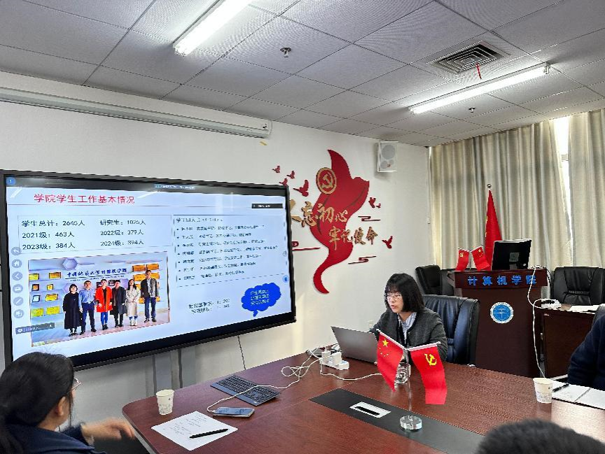 李婷作学生学业工作汇报。她详细介绍了大类分流政策、毕业申报条件、滞后毕业申请条件和流程以及特殊学术专长A类、B类和工程硕博等推免政策,提醒班主任老师们了解政策,动员同学们早做规划并有针对性地进行申报。