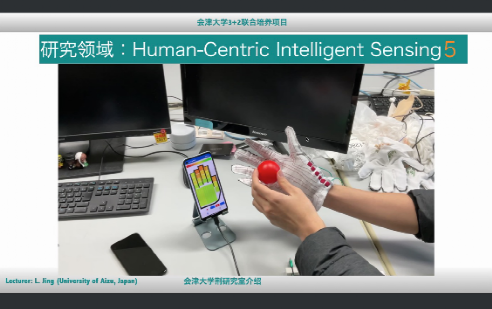 会津大学荆雷副教授重点介绍会津大学人工智能传感器实验室的研究方向、研究学习资源、研究成果及研究室学生就业去向。荆雷教授表示,该实验室专注于研究人的触觉感知及触觉数字化,欢迎对人工智能在触觉方面的应用感兴趣的同学报考。