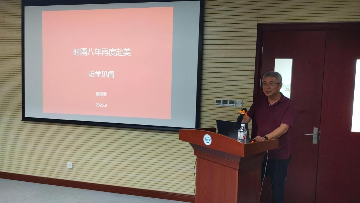 首先,康晓军老师做了“时隔八年再度赴美--访学见闻”的报告。康老师于2016年、2024年两次赴美,在East Carolina University(ECU)的物理系进行访学,师从XInHua Hu教授,从事生物信息学交叉领域方面的研究。具体研究内容主要是通过结合傅里叶变换的Transformer、重新设计的非对称双通道深度卷积网络,实现单细胞水平上对于癌症细胞的光学衍射图像进行精确的分类。康老师特别对比了对美国政治、经济的前后八年直观印象对比,从一些生活细节感受到中国出口美国产品从低端到科技含量不断提升的事实,也强烈感受到了美国对我国高科技领域的科研限制与打压,增强了尽快尽多学习研究计算机领域课题的使命感。康老师还就国际情况变化下目标访问学校、导师及签证申请给出了建议意见。