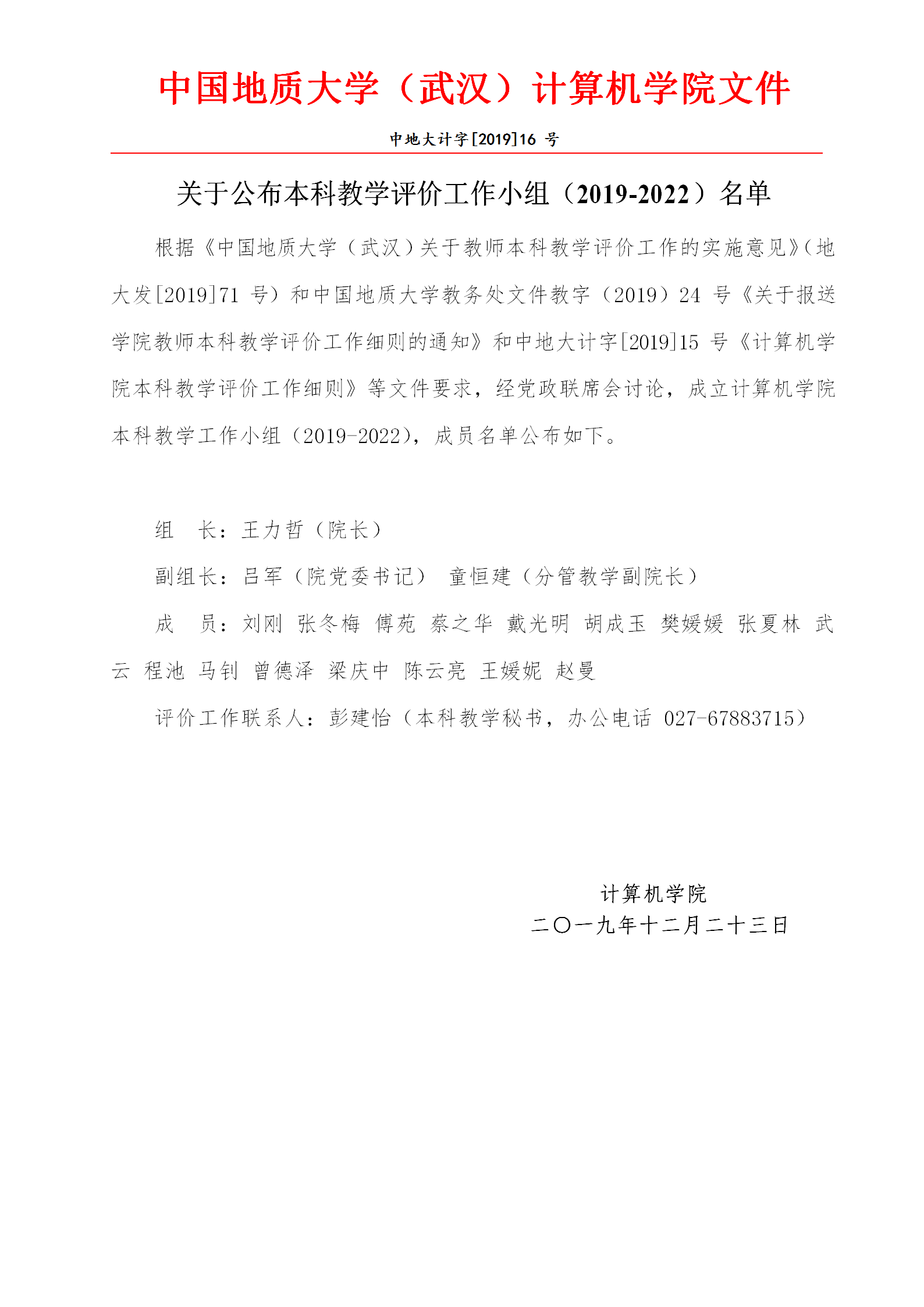 M6体育 关于公布本科教学评价工作小组(2019-2022)名单