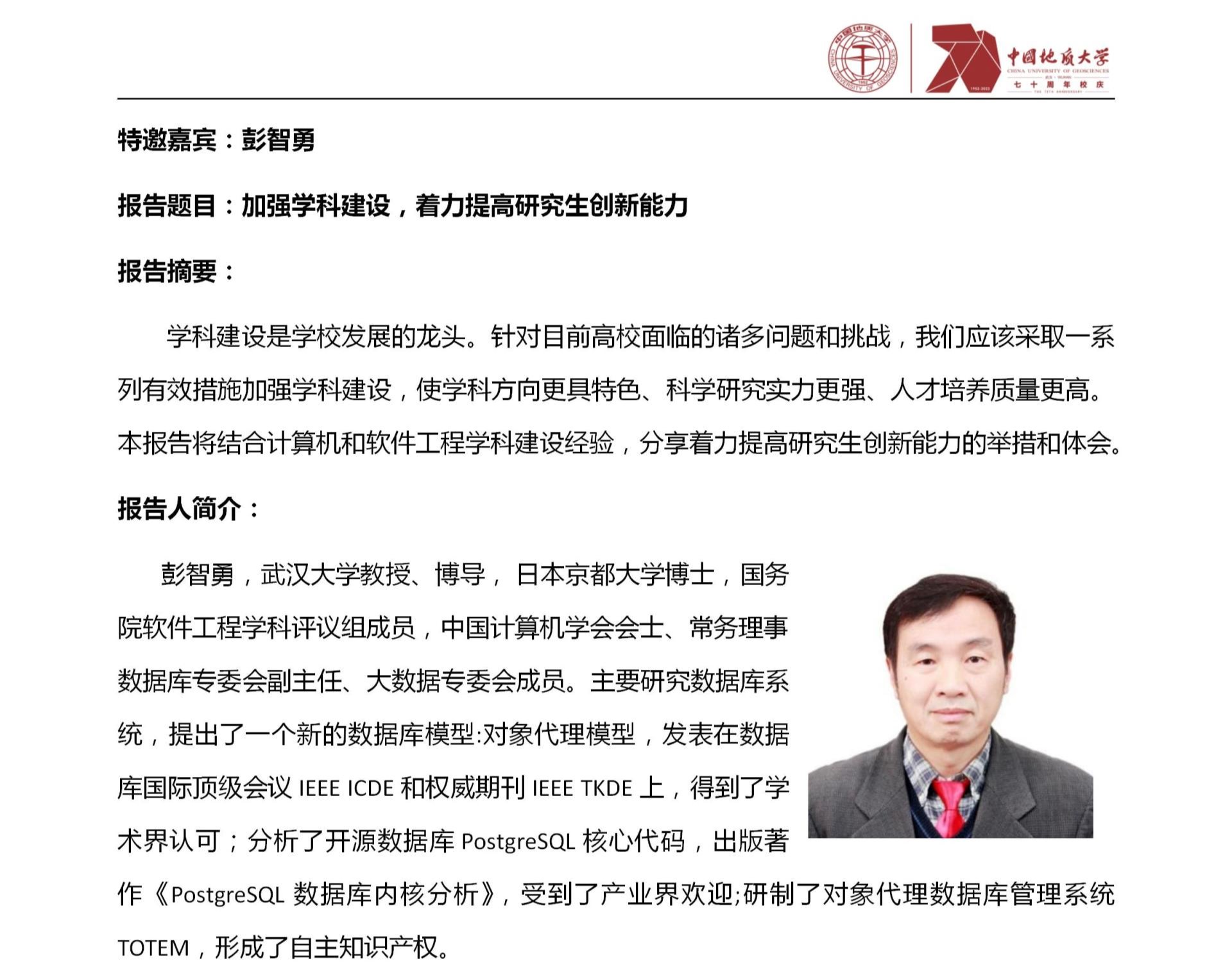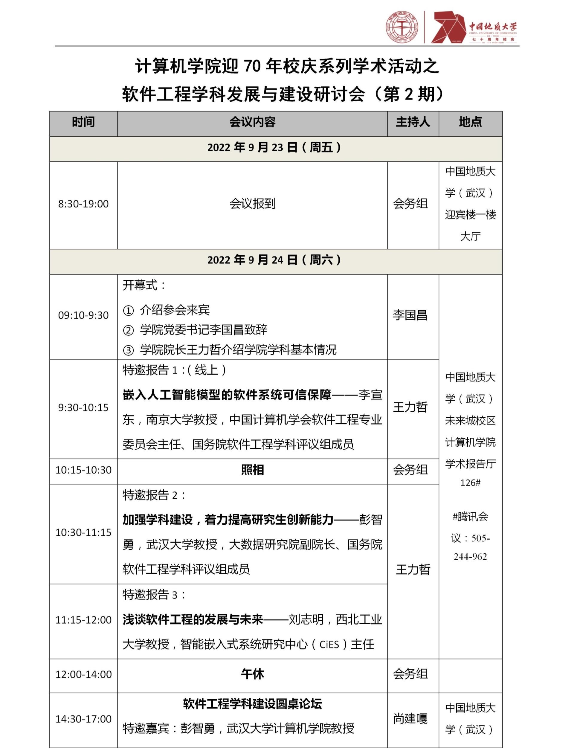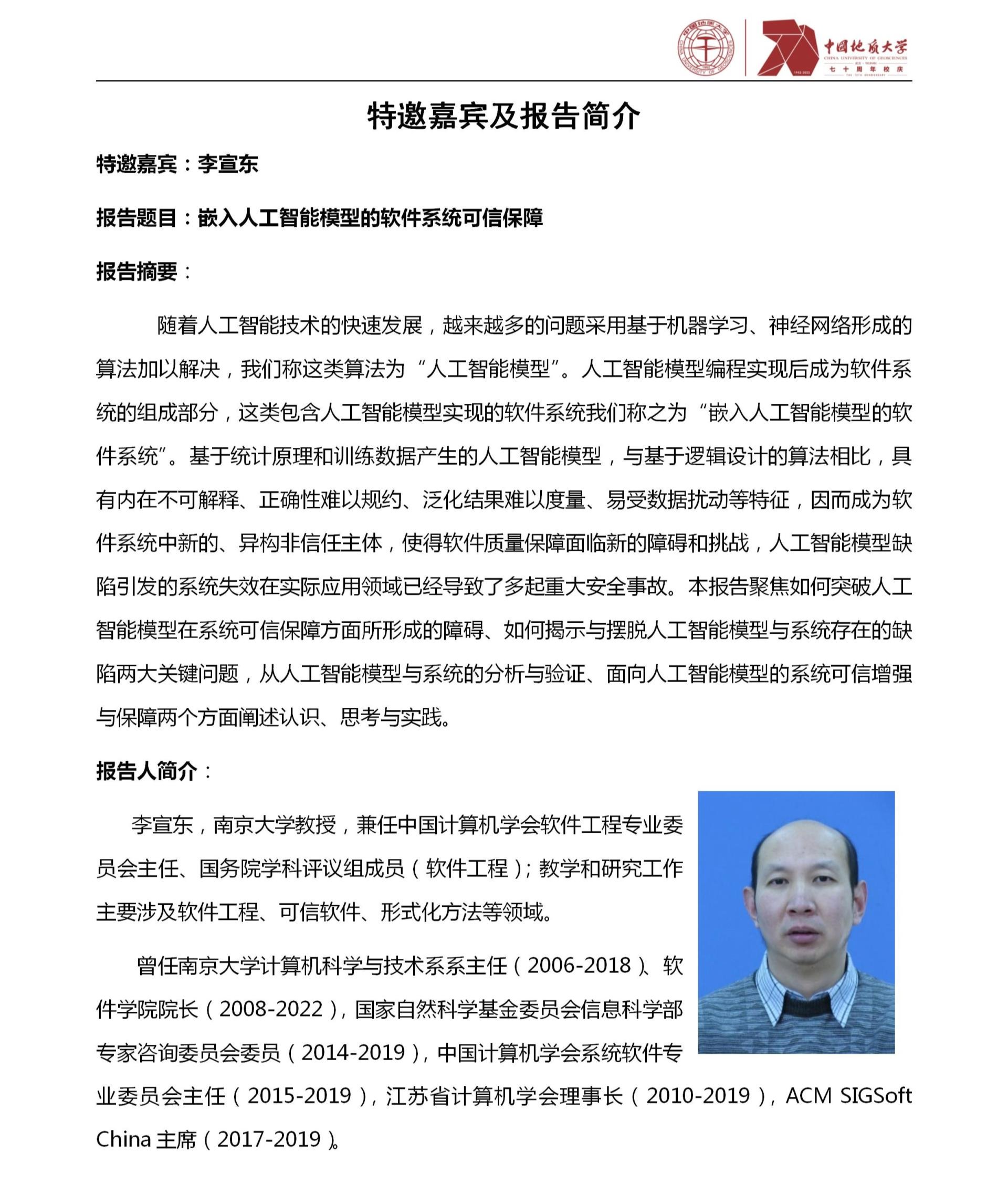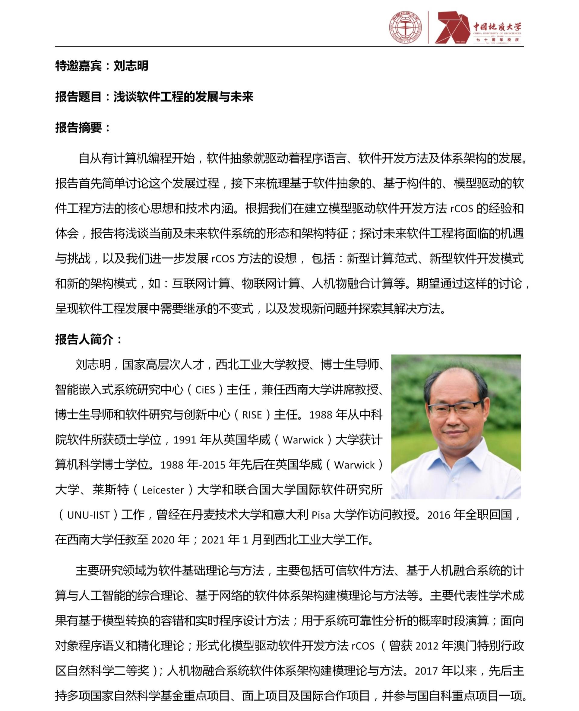 中国地质大学(武汉)70周年校庆学术活动之M6体育 软件工程学科发展与建设研讨会(第2期)