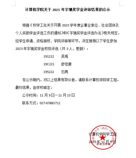 M6体育 关于2023年宇驰奖学金评审结果的公示