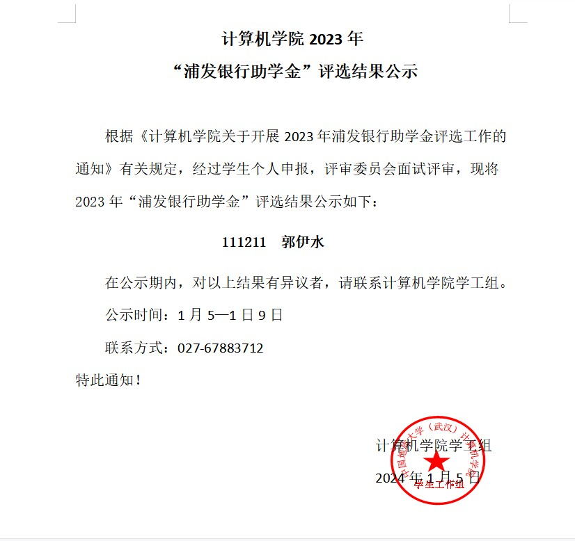 M6体育 2023年“浦发银行助学金”评选结果公示