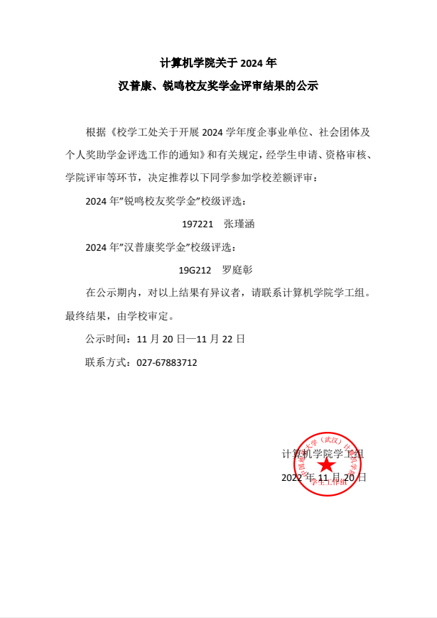 M6体育 关于2024年汉普康、锐鸣校友奖学金评审结果的公示