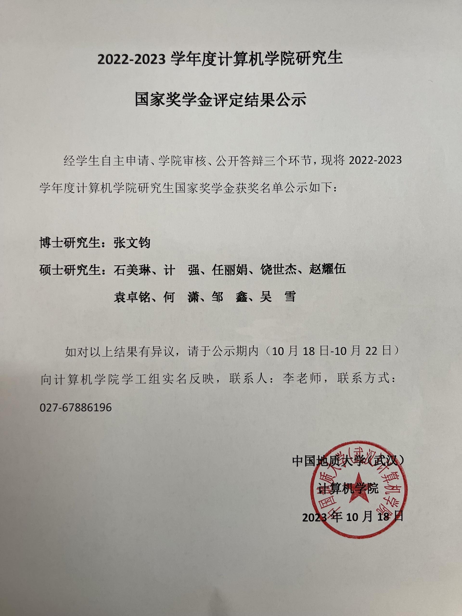 2022-2023学年度M6体育 研究生国家奖学金结果公示