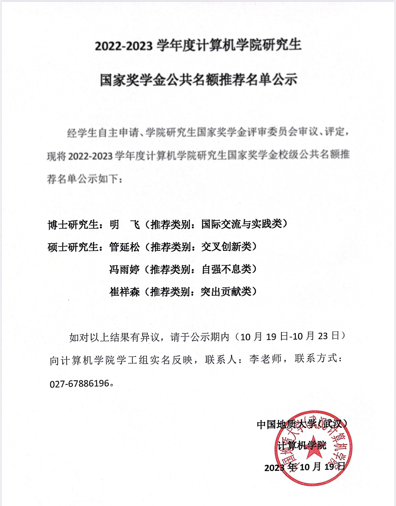 2022-2023学年M6体育 研究生国家奖学金公共名额推荐名单公示