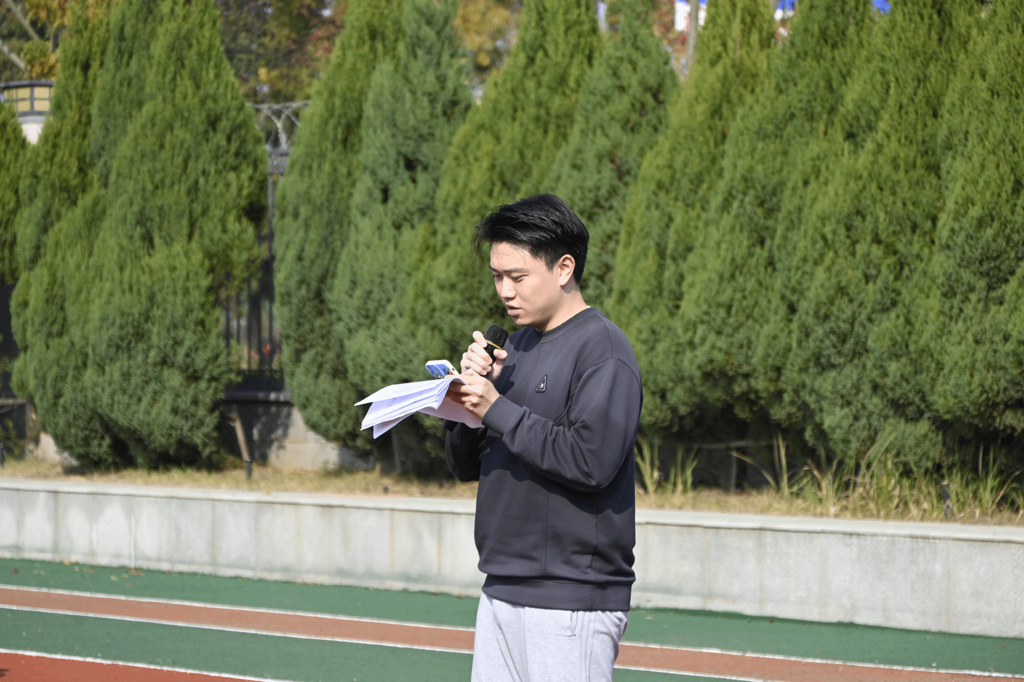 随后,研究生会文体部负责人龚瑞敏、2025级研究生殷伟杰分别作为本次趣味运动会的裁判员代表、运动员代表进行宣誓。