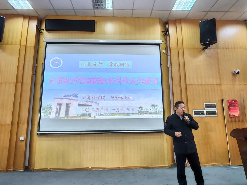 安全保卫部魏景明老师开展防诈反诈专题宣讲。他结合高校学生常见诈骗案例,从诈骗手段识别、防范技巧传授到受骗后维权途径等方面进行详细讲解,提醒同学们提高警惕,守护好个人财产安全,为安心求学筑牢安全屏障。