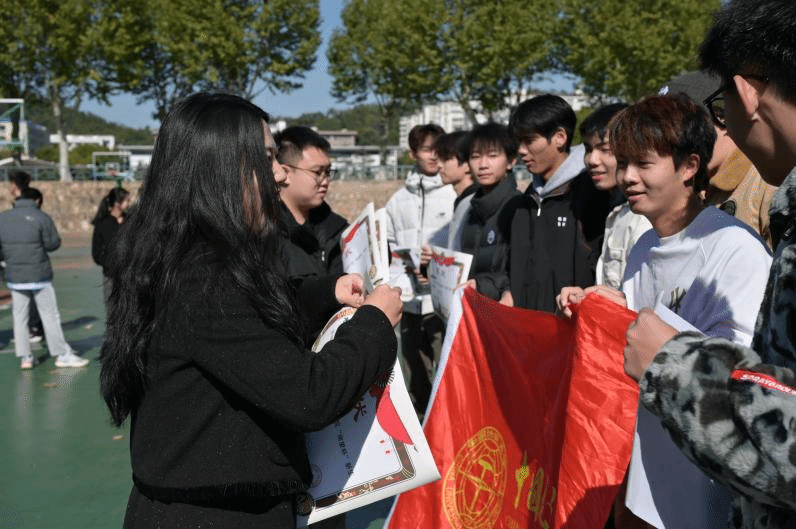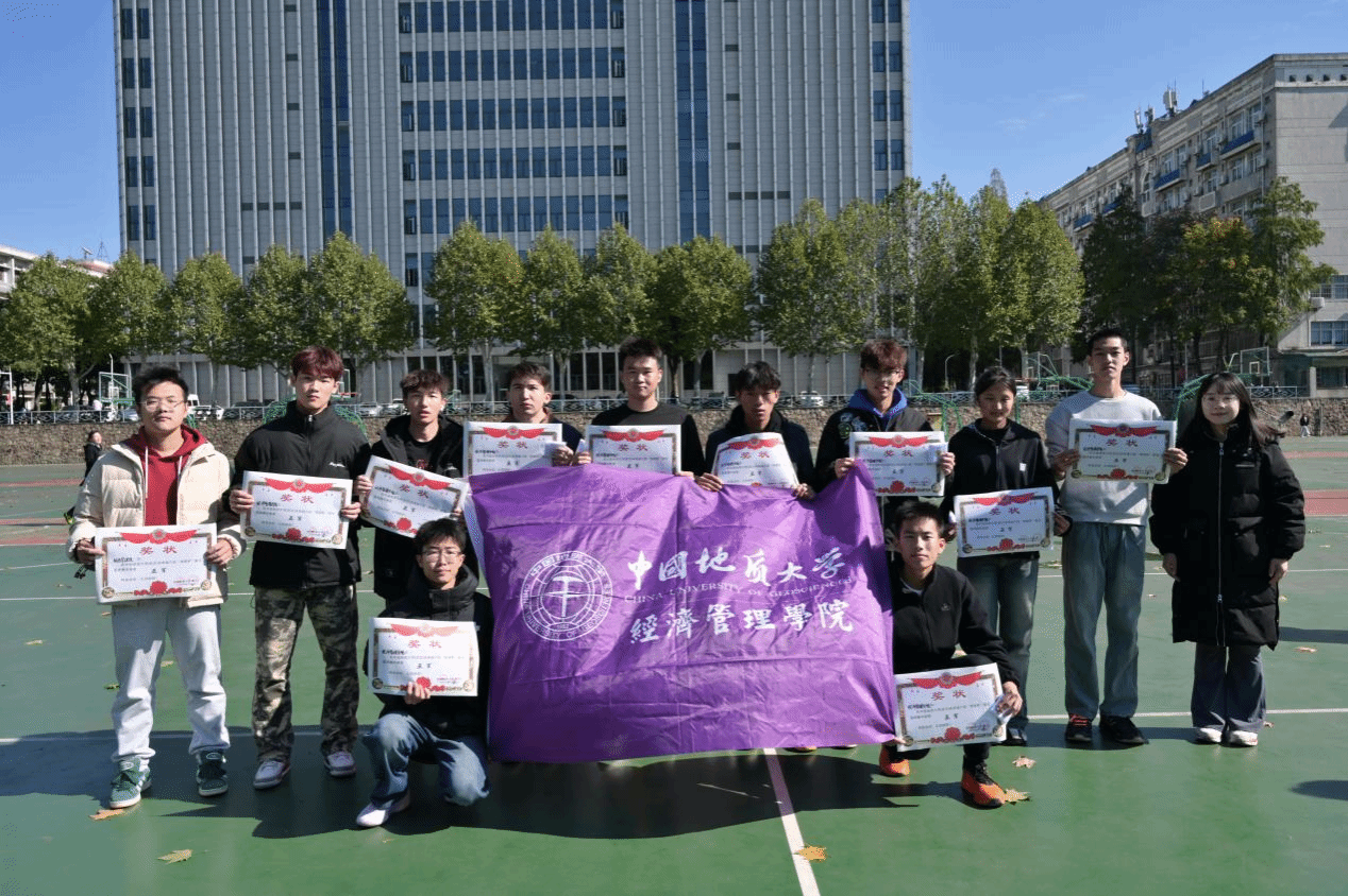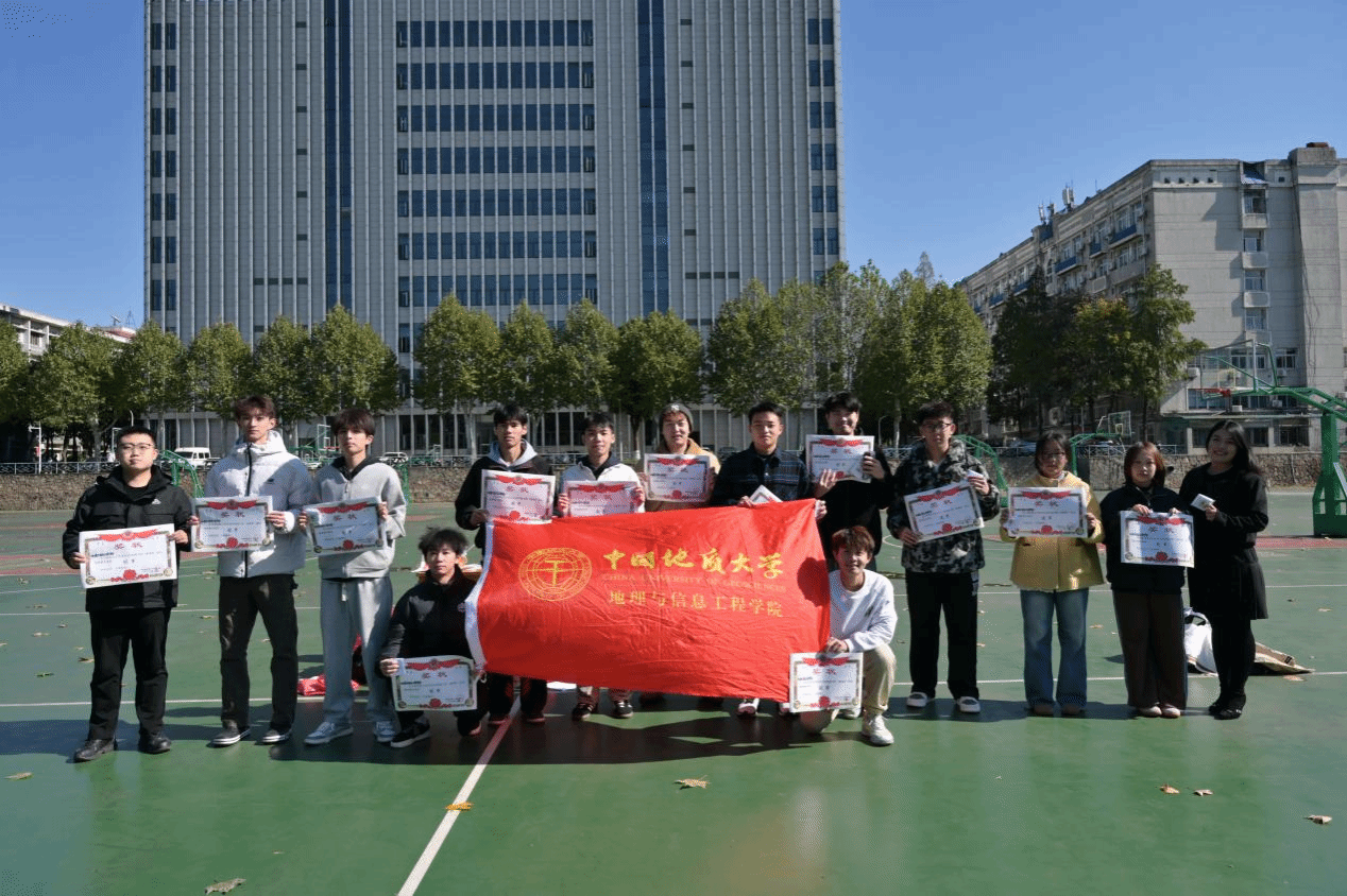 历经多轮对决,各支队伍的排名尘埃落定。六院辅导员依次登台,为获奖队伍颁发荣誉。M6体育 凭借稳定发挥与顽强斗志,成功摘得季军;经济管理M6体育 实力强劲、默契十足,一路披荆斩棘荣获亚军;地理与信息工程M6体育 在多场硬仗中奋勇拼搏、锐不可当,最终问鼎冠军!领奖台上,队员们手捧奖品与证书,笑容灿烂、眼神坚定,每一份荣誉都凝聚着日夜训练的汗水,彰显着团队协作的力量。