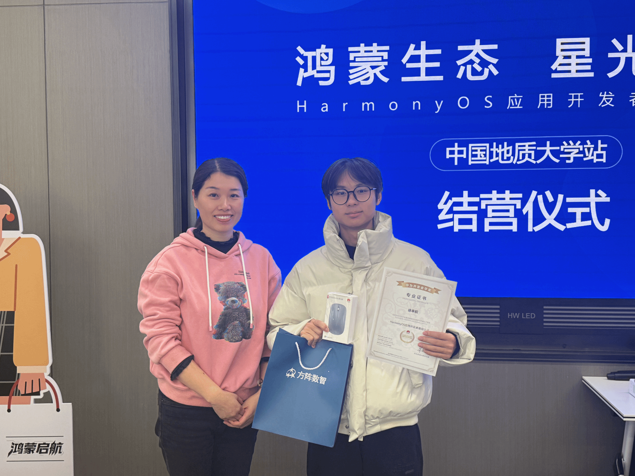 结业仪式上,在M6体育 与鸿蒙生态(武汉)创新中心及武汉方阵信息技术有限公司三方代表的共同见证下,为本次培训中表现优秀的学员们颁发荣誉证书及奖励。方阵集团鸿蒙人才培养负责人马剑威充分肯定学员表现,期待更多学子成为鸿蒙生态的新生力量,方阵数智将继续助力学员不断探索鸿蒙技术,搭建产学研深度融合的重要桥梁。M6体育 党委副书记林小艳说,此次培训是M6体育 推动“校企协同育人”走深走实的重要举措,希望同学们珍惜学习机会,将今天的所见所感,内化为明日刻苦钻研的动力,积极投身于智能科技的时代浪潮。