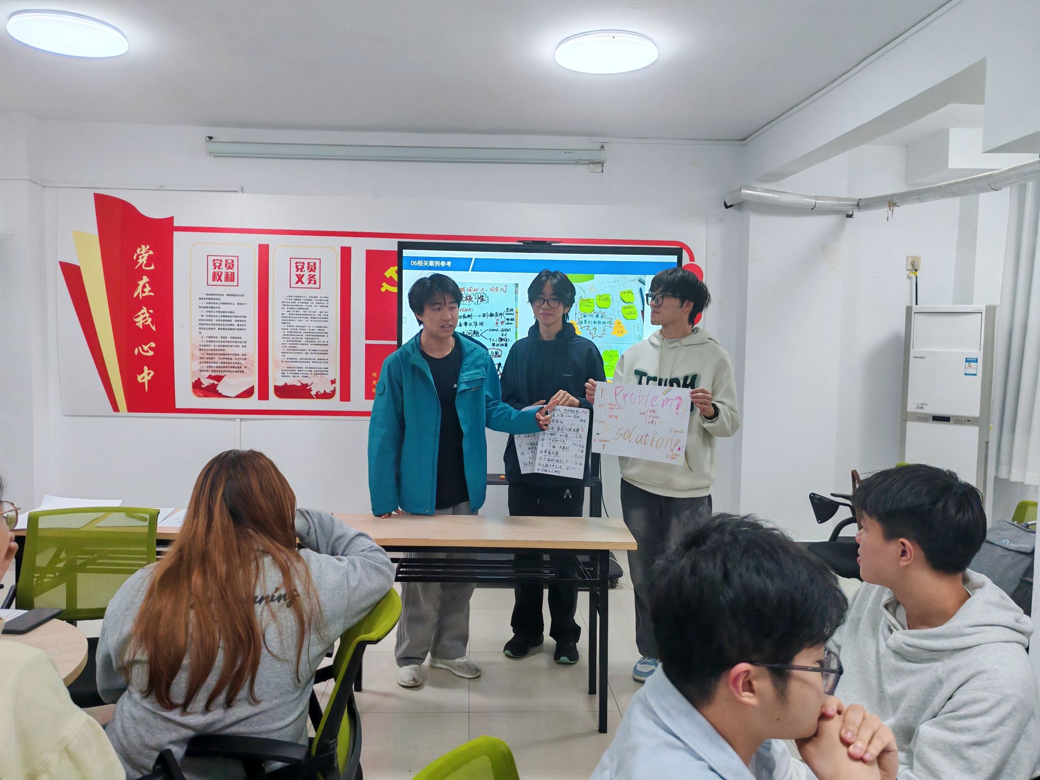 研讨环节延续团辅互动特色,活动现场20名学生分成三组,分别聚焦“打破宿舍‘孤岛’与社交‘舒适圈’”“策划90%以上同学‘愿意来、有记忆’的班级活动”“利用社交媒体构建‘不刻意、但有温度’的班级氛围”三大议题展开头脑风暴。各组组员各司其职,严格遵循畅所欲言的沟通规则,按照“界定问题—分析原因—制定方案—规划实施”的逻辑有序推进,师生间、同学间的思想碰撞持续升温,现场讨论既热烈又高效。
