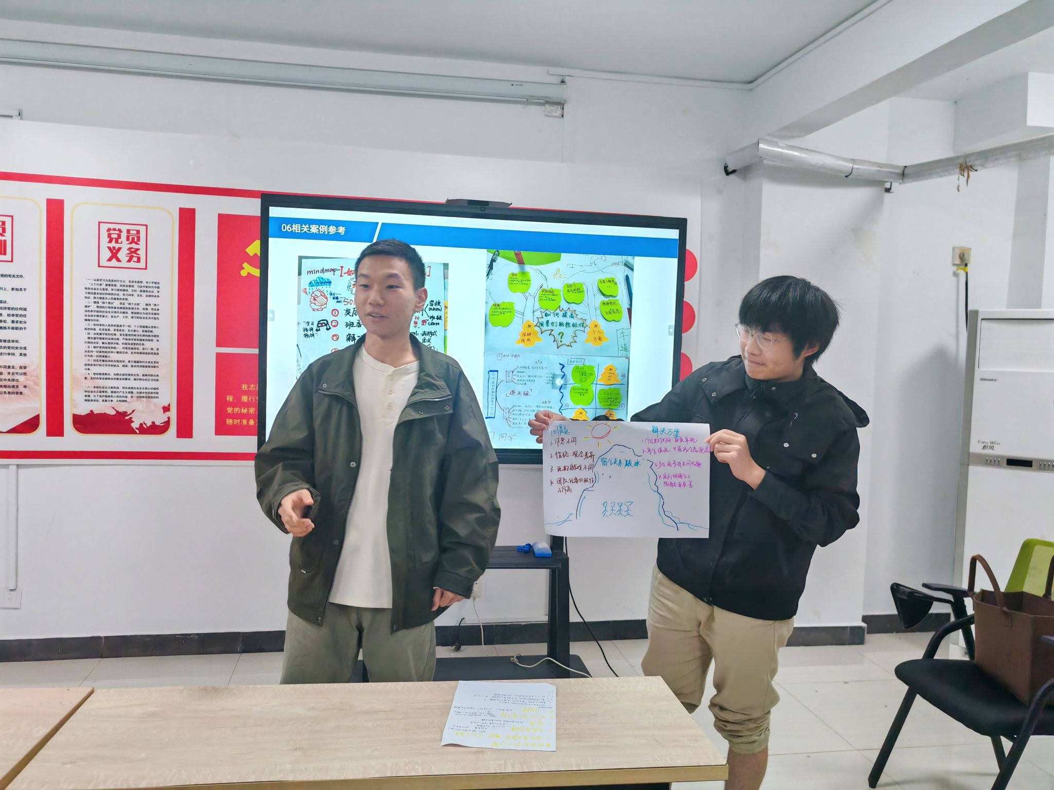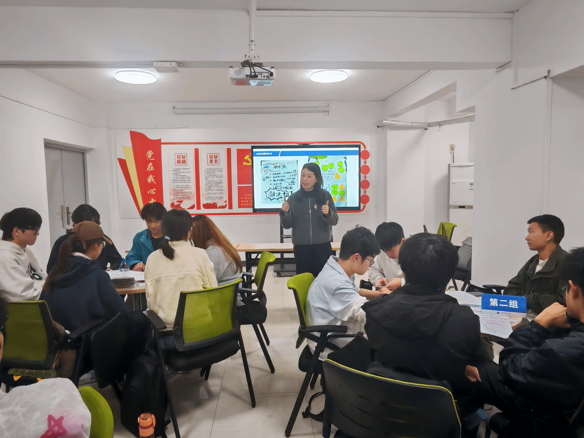 活动伊始,在林老师的引导下,“你眼中的我”团辅热身环节温情开启。同学们以绘画互动的形式分享对同伴的印象,在轻松愉悦的氛围中打破陌生感、拉近心理距离。林老师结合党建引领育人理念,精准点出当前新生班级存在的“活动参与被动”“社交圈固化”等共性问题,围绕“如何让班级真正拧成一股绳”的核心疑问,引入“七有原则”结构化研讨方法,从“有道理、有逻辑、有任务、有规则、有分工、有准备、有成果”七个维度,为高效研讨提供科学方法指导。
