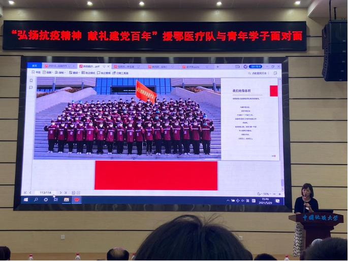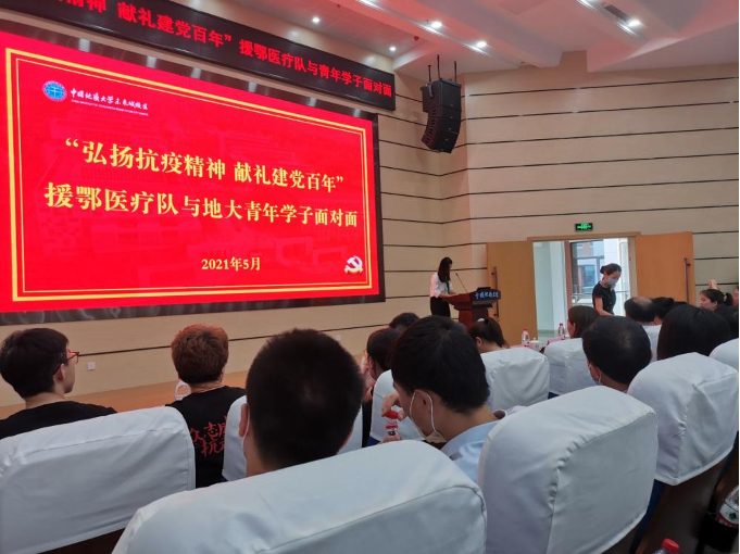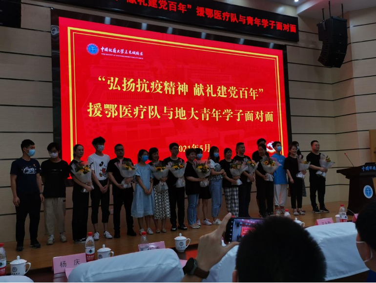 (通讯员:192192团支部、193192团支部)岱家山下夏伊始,正值人间五月天。2020年初,一场突如其来的新冠疫情席卷武汉,各省援鄂医疗队逆行出征,驰援武汉,未来城校区部分学生宿舍成为了外地援鄂医疗队驻地。如今,武汉重启,未来城校区早已春暖花开。陕西医疗队白衣战士们重返未来城校区,为地大学子讲述援鄂医疗队投身抗疫一线的动人故事,激励广大学子弘扬抗疫精神,献礼建党百年。