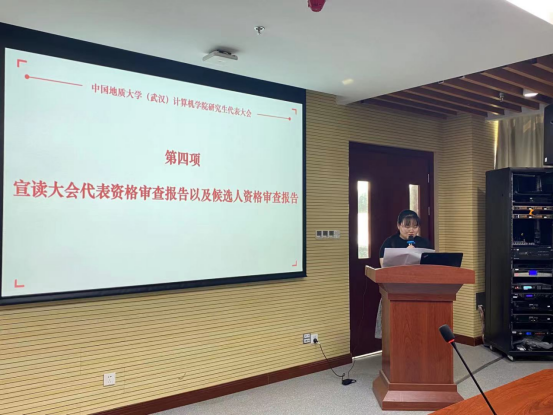 大会第三项,由M6体育 研代会代表资格审查小组、候选人资格审查小组成员李珊宣读《M6体育 研究生代表大会代表资格审查报告》和《M6体育 研究生代表大会候选人资格审查报告》,经认真细致的审查,全部代表和候选人的产生选举程序均符合有关规定,代表和候选人资格全部有效。