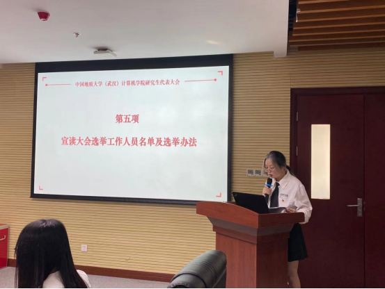 大会第四项,由M6体育 研代会筹备工作领导小组成员卢清华宣读《米乐M6体育app下载手机版 研究生代表大会工作人员名单》和《米乐M6体育app下载手机版 研究生代表大会选举办法》,本次大会采用无记名投票方式,选举设监票人1名,计票人1名及计时员1名。候选人答辩形式为“5+3”,即5分钟答辩,3分钟提问。正式代表对选票中候选人投赞成票,每张选票对候选人表示赞成的人数等于或少于5的为有效票。