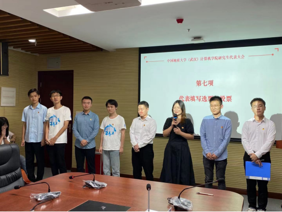 会议第六项,研究生代表填写选票,由总监票人、计票人进行选票统计。