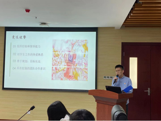 随后,进入候选人竞选答辩阶段。按照抽签顺序,各候选人依次进行竞选答辩,从自我介绍、工作经历、岗位认知、竞选优势和未来工作计划等方面进行展示和陈述。
