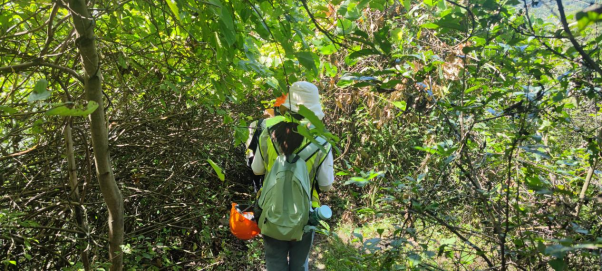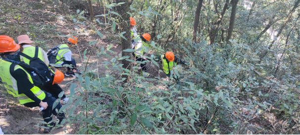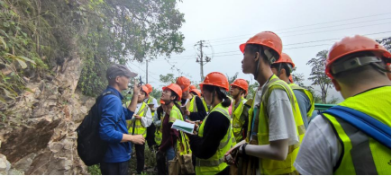 芝茅公路路线上汪校锋老师攀上岩壁做比例尺