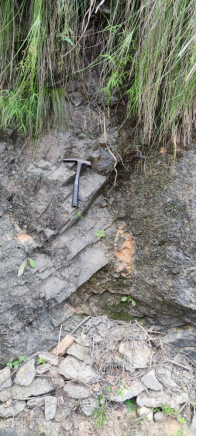 在实际观察构造现象的过程中,一个确定的比例尺是确定图中尺寸参数的关键。除去标准的比例尺,野簿、地质锤甚至老师同学,都是野外绝佳的比例尺。还记得在芝茅公路路线上,张志庭老师发现一个新的构造现象后,汪校锋老师兴奋地说:“你们快点来拍照,我来做比例尺!”
