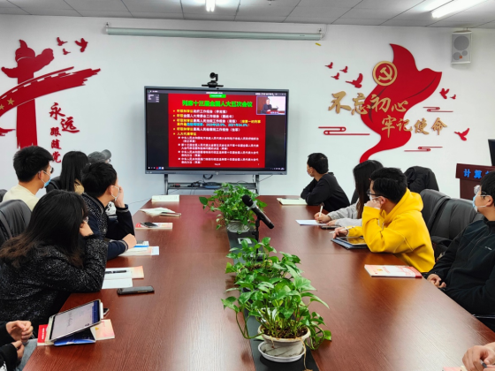 3月18日上午,M6体育 学生党建办公室主任王太茂与M6体育 全体学生党支部书记在309会议室集中观看学习学校组织的全国两会精神传达会,并就会议内容进行热烈讨论。