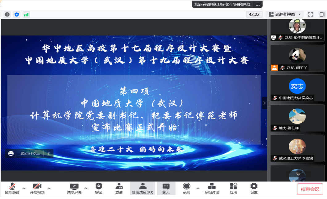 喜迎二十大,编码向未来 | 华中地区高校第十七届程序设计大赛暨中国地质大学(武汉)第十九届程序设计大赛成功举办