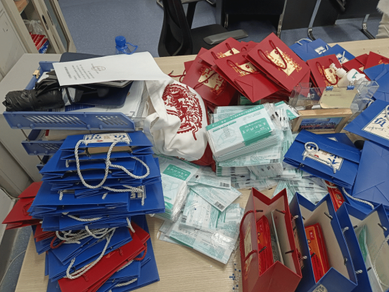 同学们又把小礼袋重整摆放整齐迎接活动开始