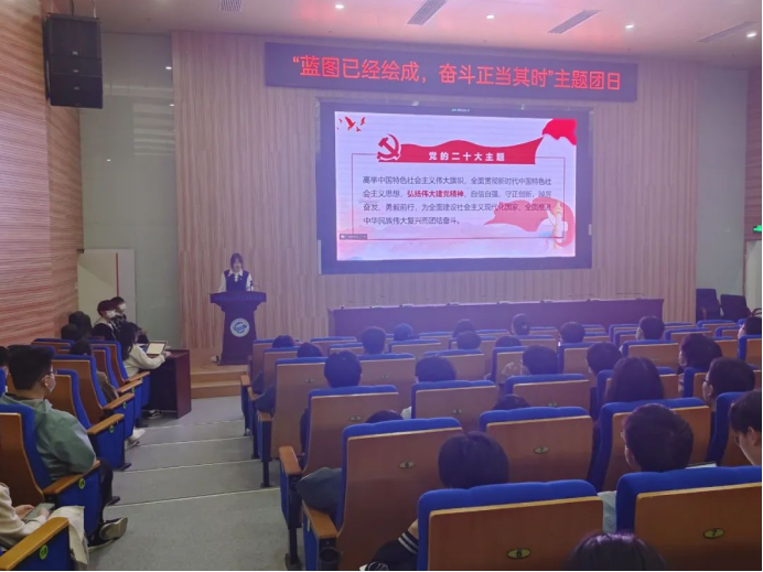 为深入学习党的二十大报告,深刻领悟党的二十大精神,切实把会议精神和行动统一起来,为中华民族伟大复兴的新征程贡献青春力量。近期,M6体育 2021级10个团支部、2022级11个团支部分别举办了以“蓝图已经绘成,奋斗正当其时”为主题的大型团日活动。本次团日活动于未来城校区M6体育 大楼126报告厅和南望山校区教三楼111教室举行,全体团员参会,会议由院团委学生会组织部副部长郭洋利主持。