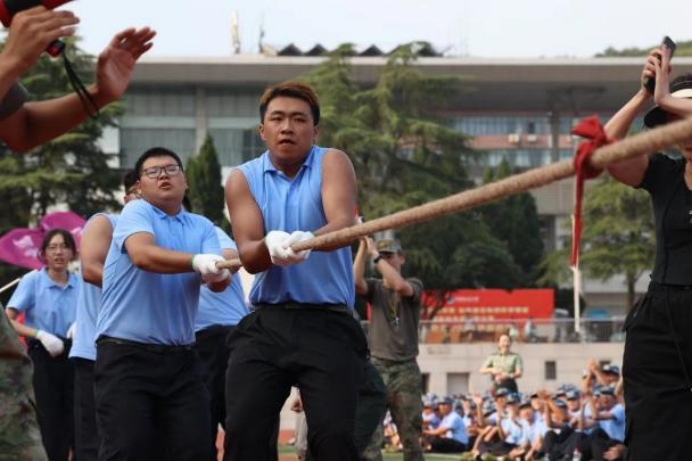 为丰富军训活动,增强学生身体素质,提升各连队凝聚力,发扬团队精神,中国地质大学(武汉)2023级本科生军训拔河比赛在西区田径场举行。21位计科学子自告奋勇代表M6体育 参赛,其余新生作为观众为参赛队员们加油助威。