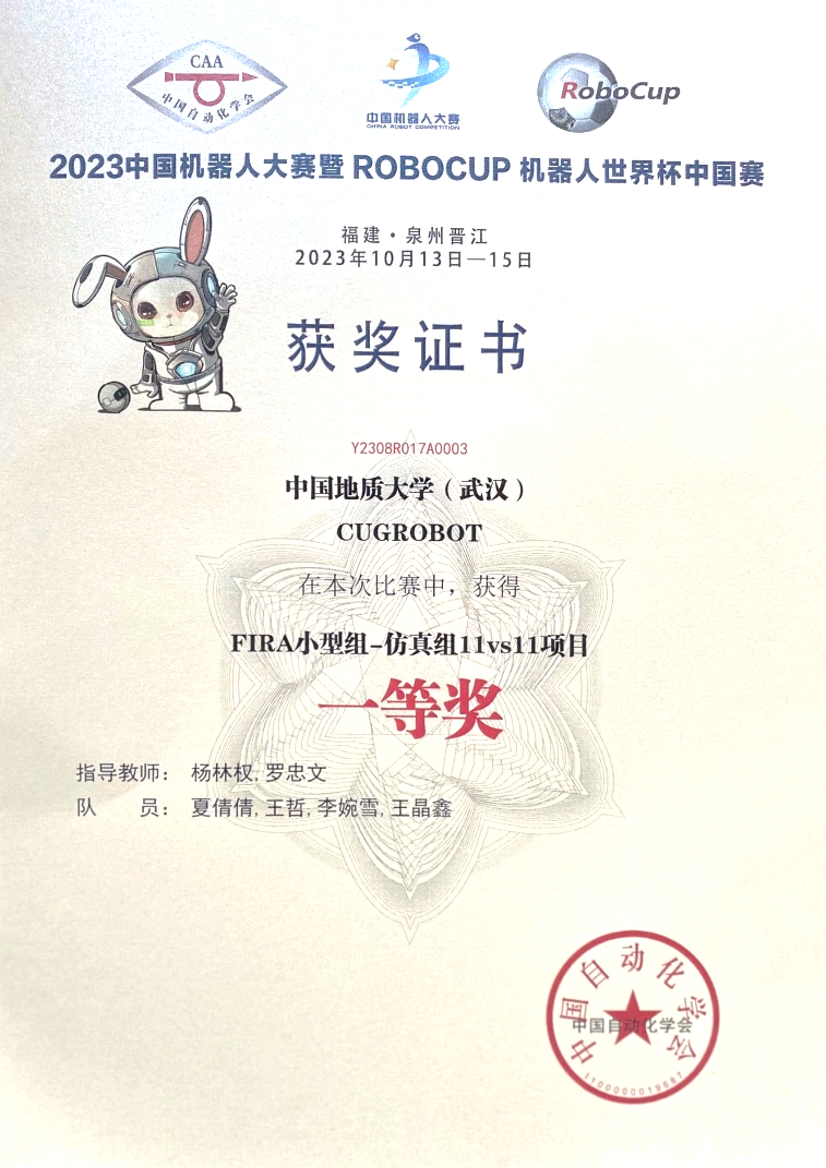 10月13至15日,2023年“中国机器人大赛暨RoboCup机器人世界杯中国赛”在福建晋江国际会展中心落下帷幕。我校M6体育 杨林权副教授和罗忠文教授指导的学生团队参赛。经过激烈的比赛,最终学生团队勇夺FIRA仿真组5vs5项目第3名,国赛一等奖和仿真组11vs11项目的第3名,国赛一等奖。