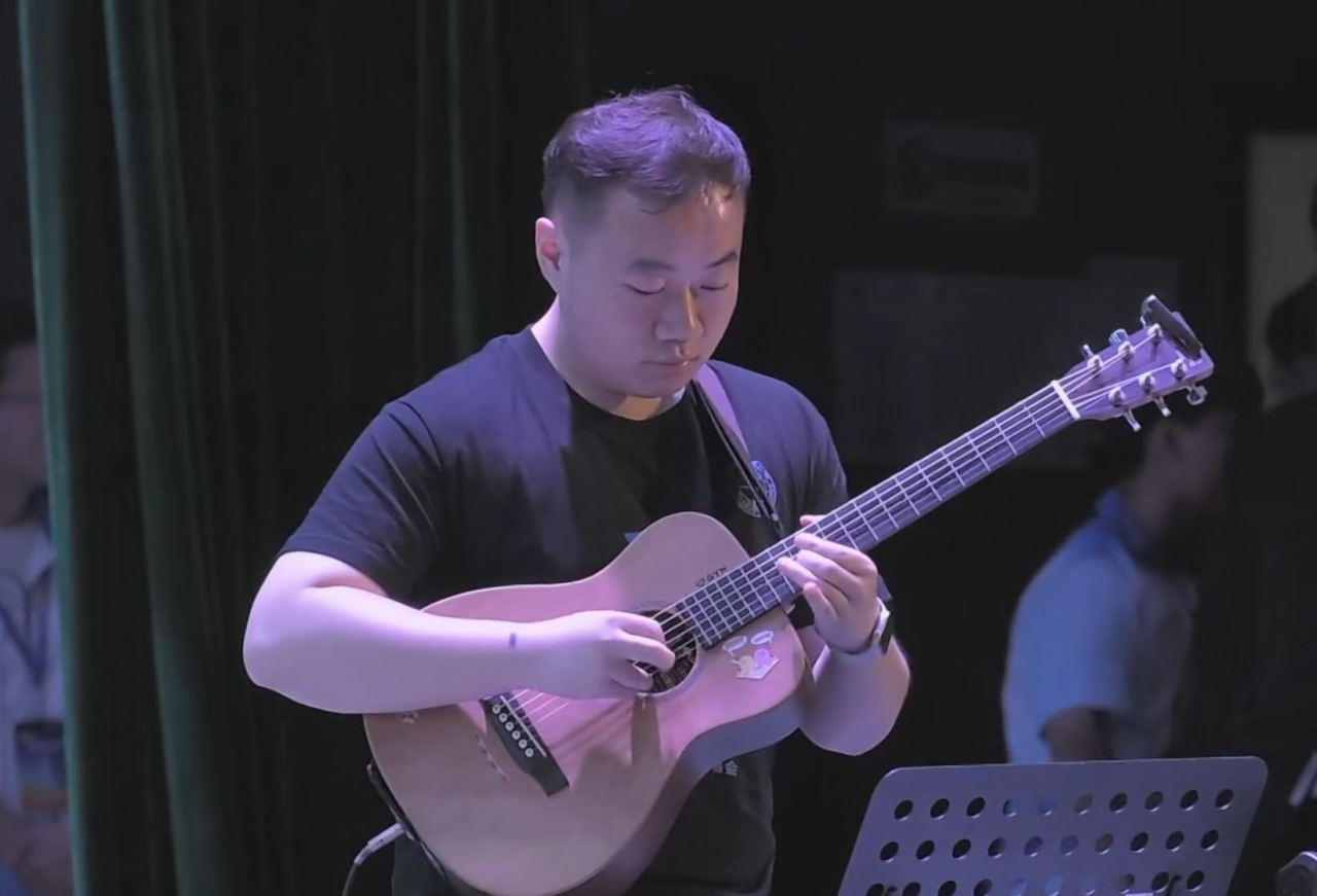 袁卓铭同学不仅在科研领域颇有所得,而且兴趣广泛,热衷于原创音乐的创作与编曲。从本科开始,便组建了武汉本土校园摇滚原创乐队,其中担任主音吉他手一职,曾受邀参加华中师范大学、武汉理工大学和武汉大学高校音乐节演出与LiveHouse演出,也曾代表中国地质大学(武汉)参加全国大学生音乐节,唱出属于CUGer的热血与青春。其乐队原创歌曲《我们终将再次相遇》更是收录为学校社团联合会的主题曲,在疫情爆发的艰难时期里,深深鼓舞着每个地大学子。